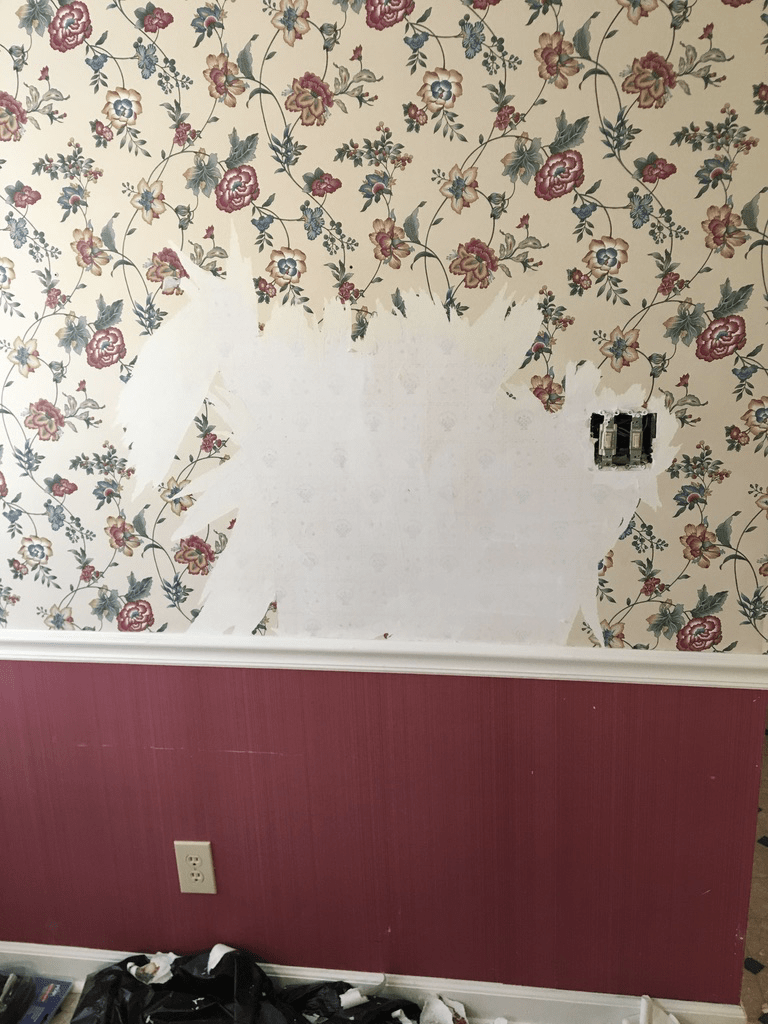 I don’t mind wallpaper removal. It is a tedious job, but also satisfying. Peeling off piece by piece until finally a blank canvas remains.