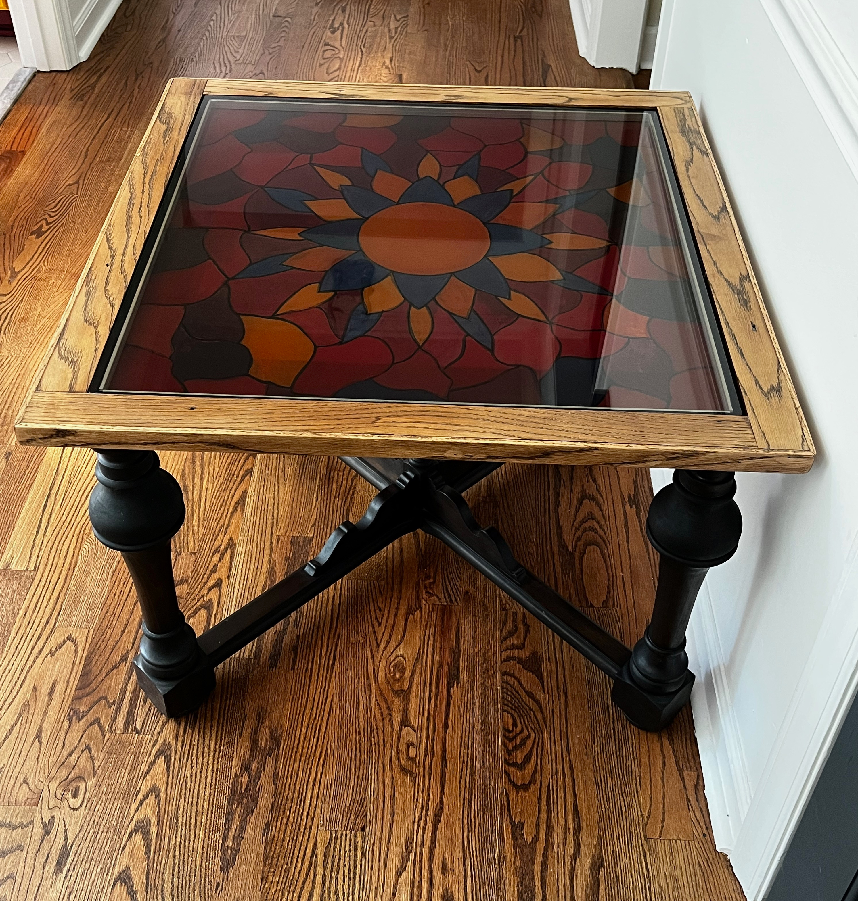 So, it was a stopping point. The table was fine as it was. But I felt like something was missing. I had the idea that it would be so cool if the glass insert was actually stained glass.